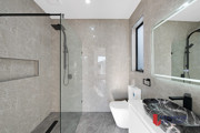 • 40mm stone benchtop with waterfall edge, 900mm stainless steel appliances, and a dishwasher for added convenience.