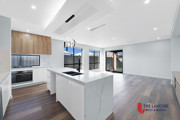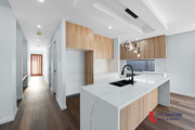 • Ultra-modern kitchen with high-end upgrades, including a bulkhead with LED pendant lights for a touch of elegance.