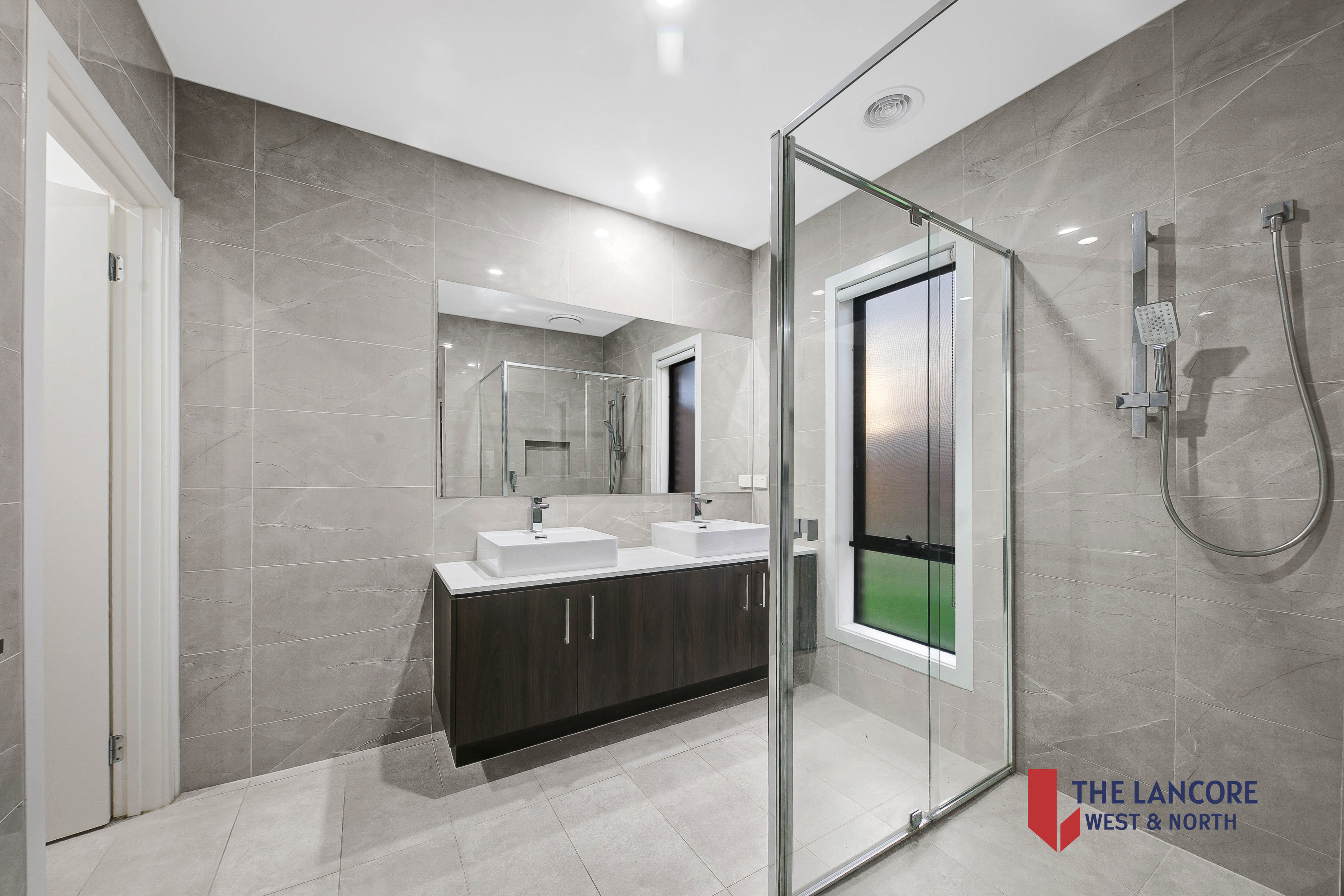 Expansive Master Bedroom with Walk-in Robe (WIR) and Ensuite featuring double vanity and floor-to-ceiling tiles