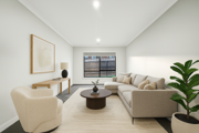 High ceilings and blinds throughout