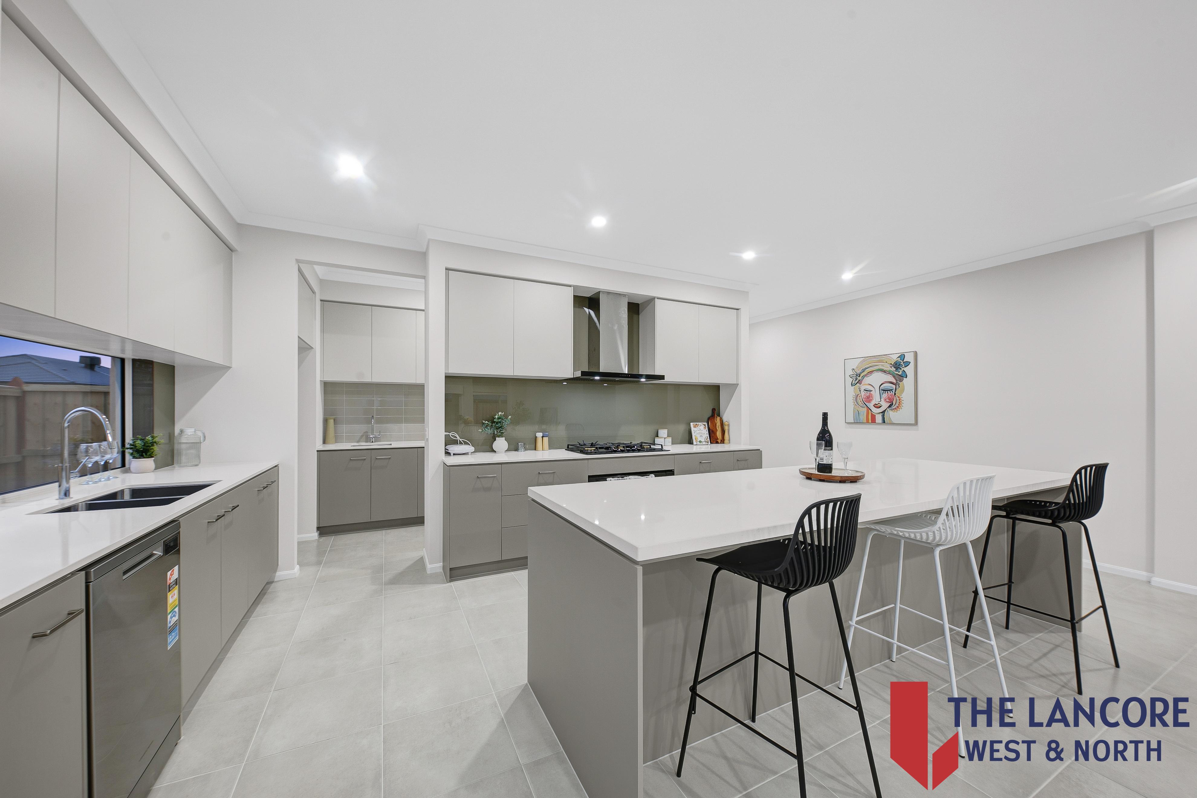 • Designer kitchen with 40mm stone benchtops and splashback