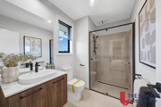 Extended 1800mm tiled shower with black fixtures